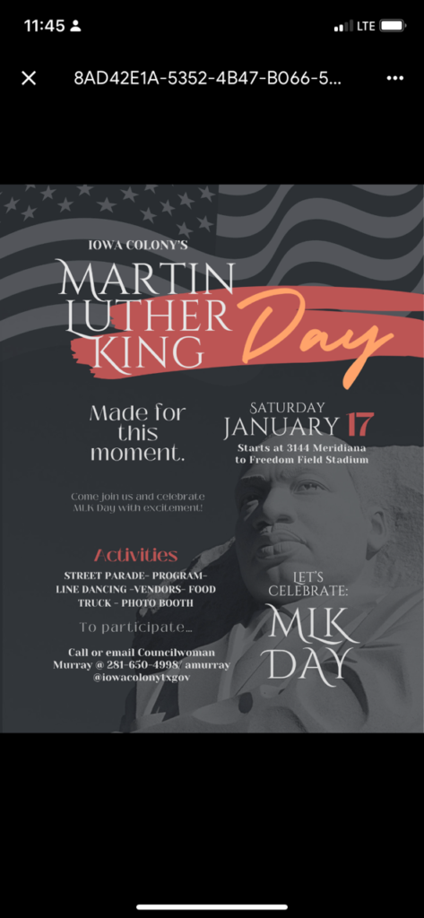 Please contact Mr. Robinson or Mr. Coopwood for the Jan 17 (Saturday) parade. We are still gathering information for the Jan 19 (Monday) Alvin parade.
